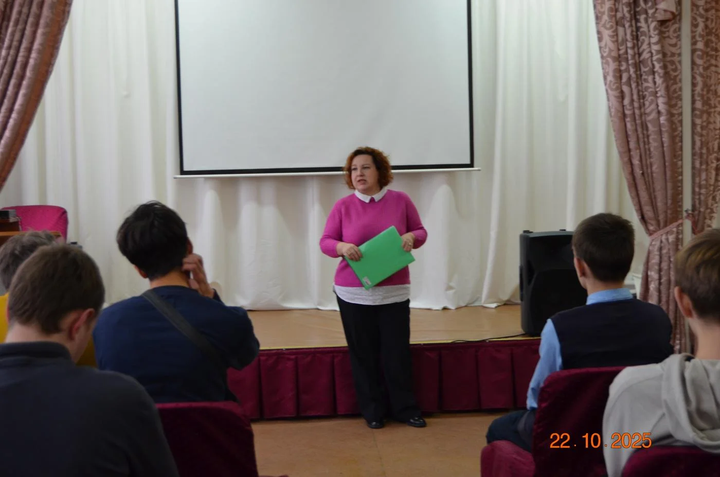 22.10.2025 г. сотрудники Неманской ЦРБ посетили МАОУ СОШ№2 г. Немана. С выпускниками 9 и 11 классов пообщались специалист по кадрам Изотова Виктория Алексеевна и юрисконсульт Смолина Наталья Николаевна.