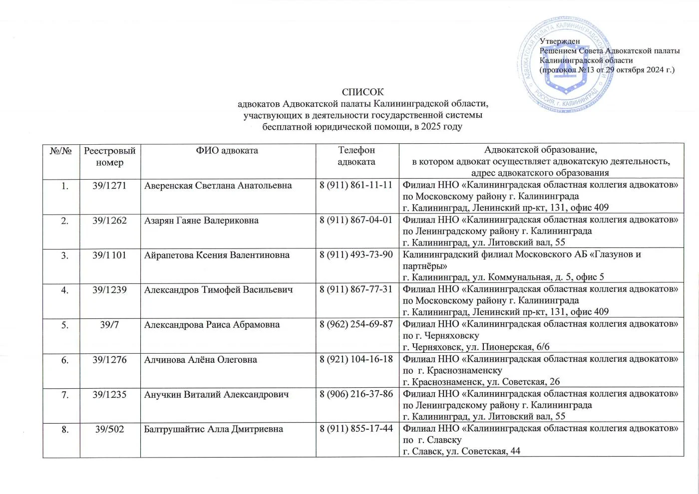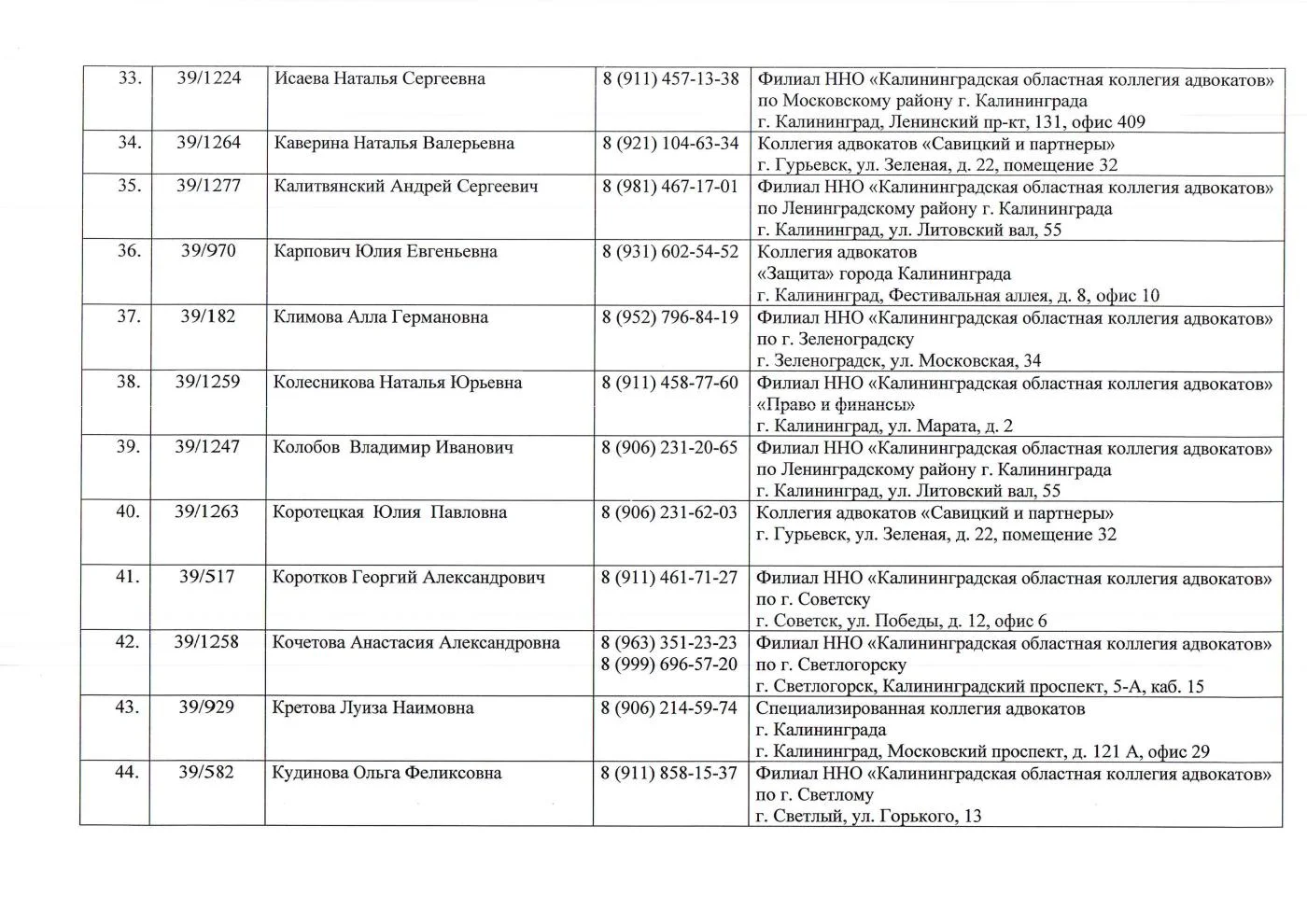 Нотариальная палата Калининградской области 67-33-24