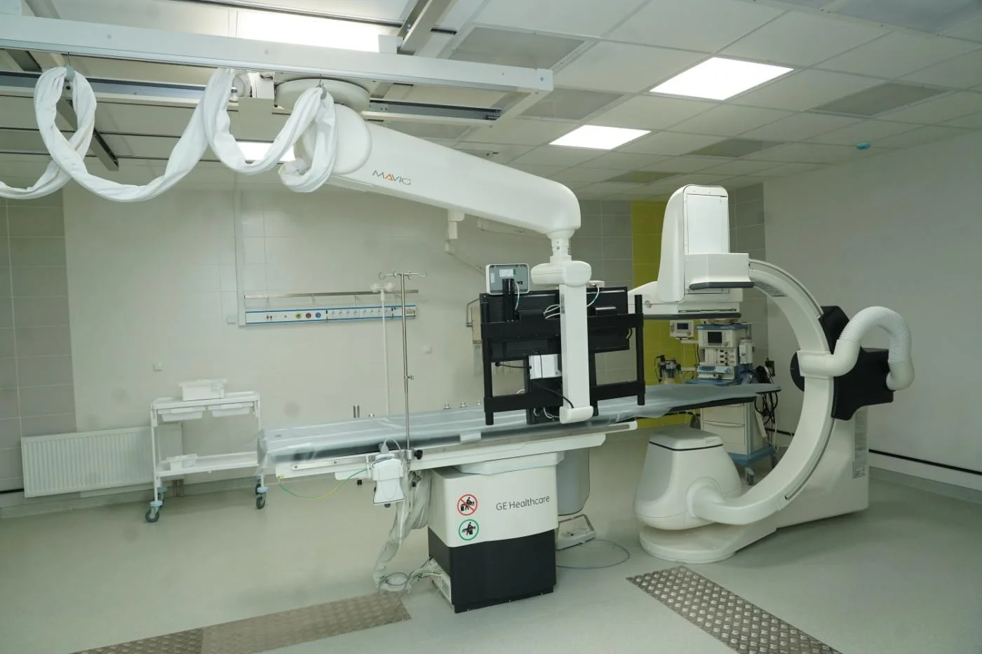В настоящий момент в помещениях сосудистого центра полностью завершен капитальный ремонт, смонтирован ангиограф экспертного класса. Аппарат позволит проводить более семисот хирургических манипуляций в год. Параллельно с 26 марта начался первый этап обучения персонала – врачей рентген-лаборантов, которые буду задействованы в работе в специализированной рентген-операционной.