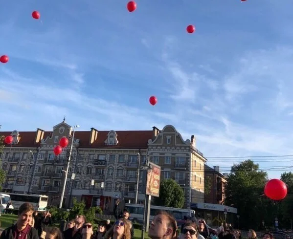 По окончании акции в небо взлетели красные шары, символизирующие первый путь передачи ВИЧ-инфекции – от наркозависимых через кровь.